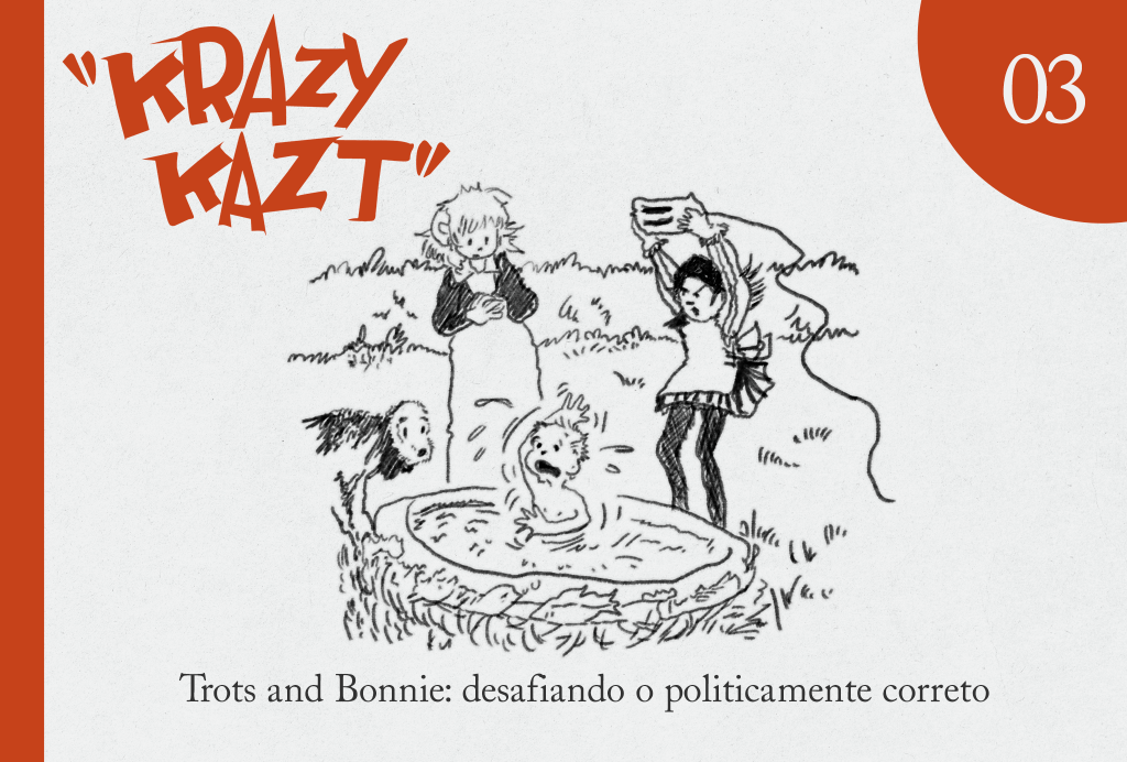 Pré-adolescentes que só pensam em sexo; homicídio; nudez; tortura; aborto; absorventes sujos; contos eróticos escritos por um cachorro: esses são apenas alguns dos assuntos abordados por Trots and Bonnie, tira escrita e desenhada pela americana Shary Flenniken. Publicado na lendária revista de humor juvenil National Lampoon de 1972 a 1993, o quadrinho resistiu ao tempo não como peça de museu, mas, sim, como um dos mais provocadores trabalhos da cena mainstream dos Estados Unidos em todos os tempos. Há cinquenta anos, Shary falava sobre temas ainda tabus para a sociedade atual, sob um ponto de vista feminino e feminista, a um público de leitores majoritariamente masculino. Para isso, usou humor de primeira linha e desenhos dignos dos grandes mestres das tiras do início do século 20. Este episódio do Krazy Kazt apresenta uma artista e um trabalho injustamente desvalorizados pelo tempo, tão relevantes hoje como no auge de sua popularidade, décadas atrás.