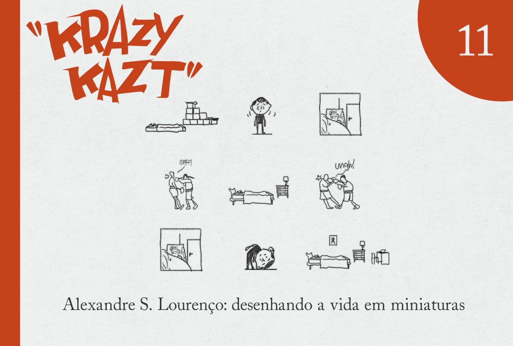 A forma como Alexandre S. Lourenço desenha talvez seja uma das mais reconhecíveis do quadrinho nacional. Afinal, ninguém consegue miniaturizar a vida como esse artista carioca. Seus personagens e o mundo ao redor deles (casas, carros, objetos) são pequenininhos, mas tão cheios de detalhes que quase precisam de lupa para serem apreciados completamente. É curioso, então, como suas HQs, mesmo com desenhos minúsculos, conseguem amplificar todo o drama da existência humana – abordando memórias dolorosas, relacionamentos quebrados, famílias em busca de reencontros, pessoas tentando sobreviver no capitalismo tardio – em meio a estruturas narrativas pouco usuais. Este episódio do Krazy Kazt analisa as obras de Lourenço com o objetivo de entender o que faz dele um dos mais importantes formalistas do gibi brasileiro contemporâneo.